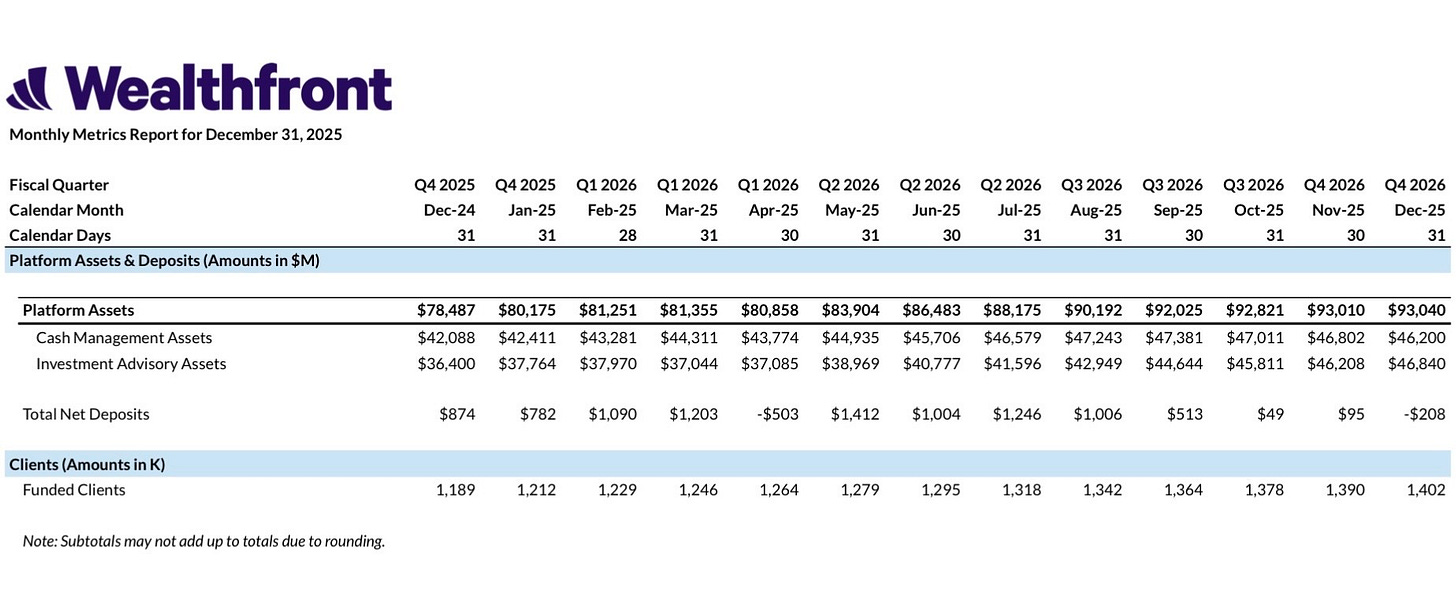 Wealthfront’s stock has declined >40% since its IPO in December 2025. The company has about ⅓ of its market cap in cash, no debt, and trades at a discount to the valuation UBS agreed to acquire it in 2022.