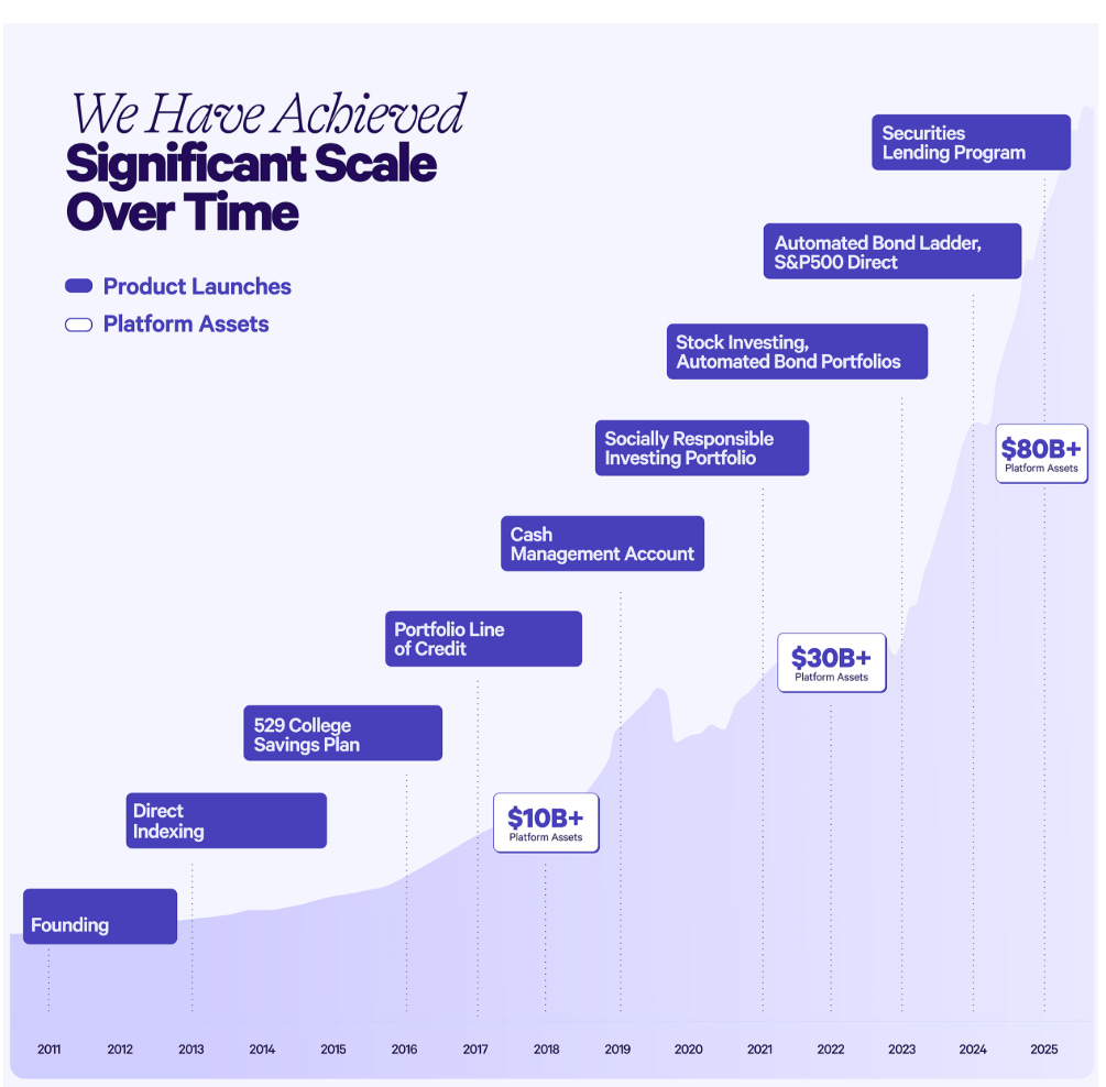Efficient, low-cost customer acquisition through word of mouth and scale (~$200m AUM/employee) allows Wealthfront to routinely develop and ship new, low-cost investment services at a remarkable pace.